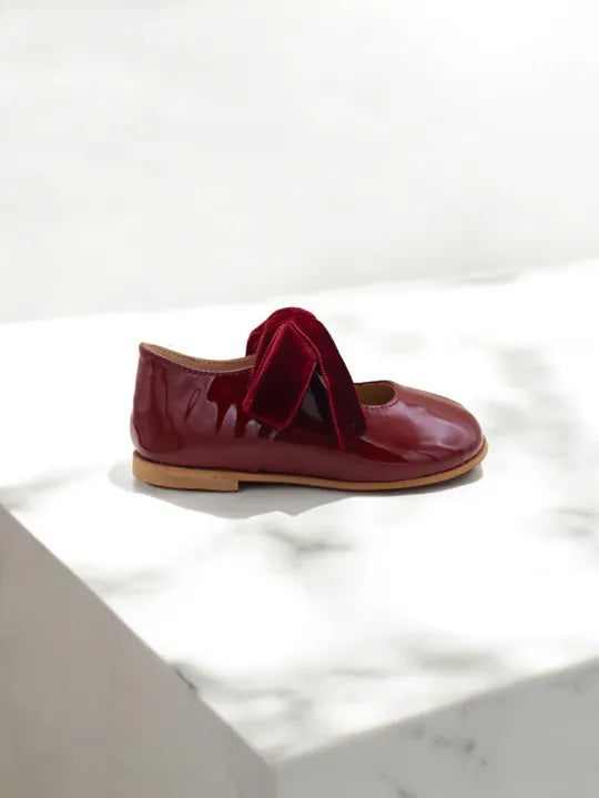 Zamansız ve sade  tasarlanmış bu şık bordo rugan babet, zarafeti ve konforu bir araya getiriyor. Fransız kadife bağcıkları ile her ayağa mükemmel uyum sağlar.
