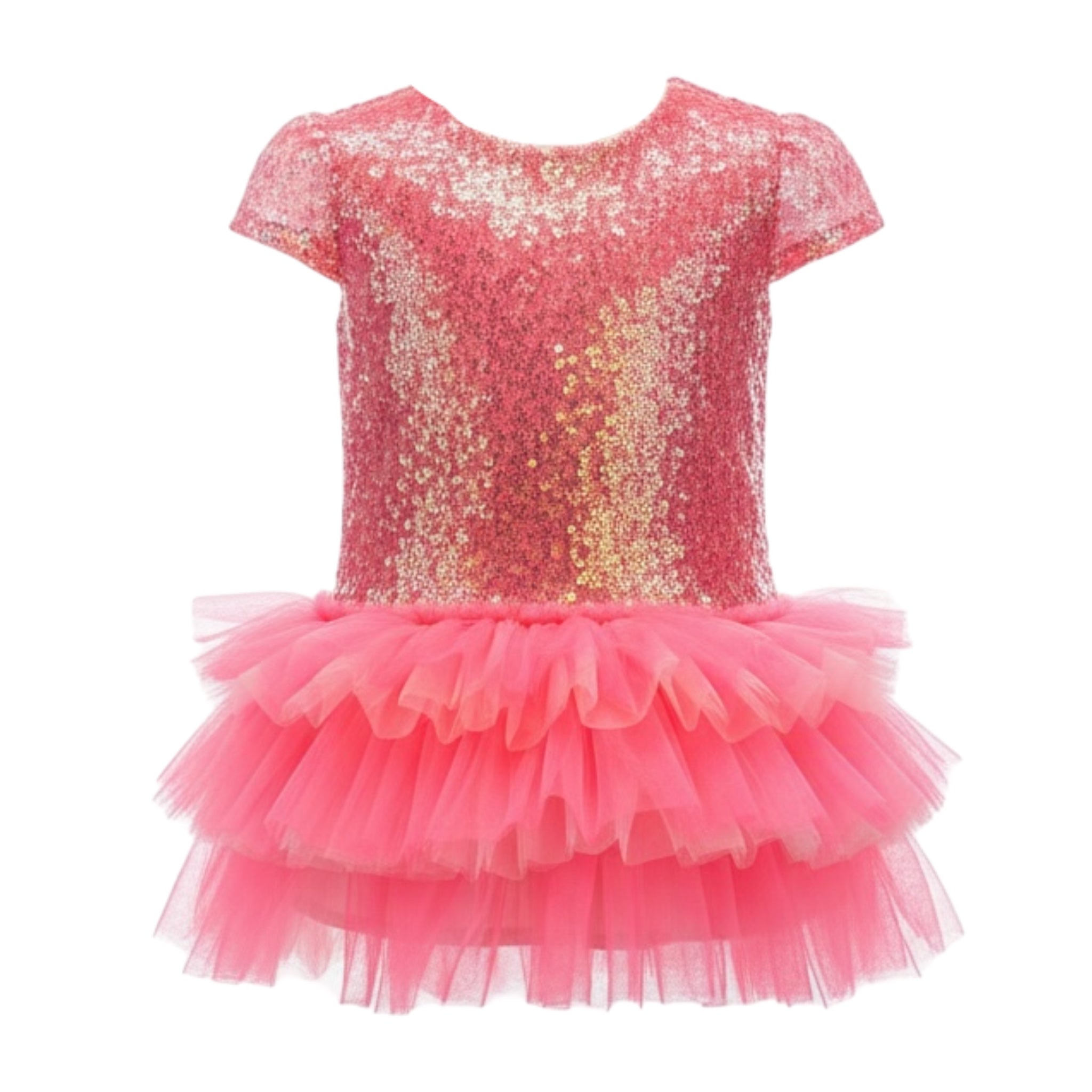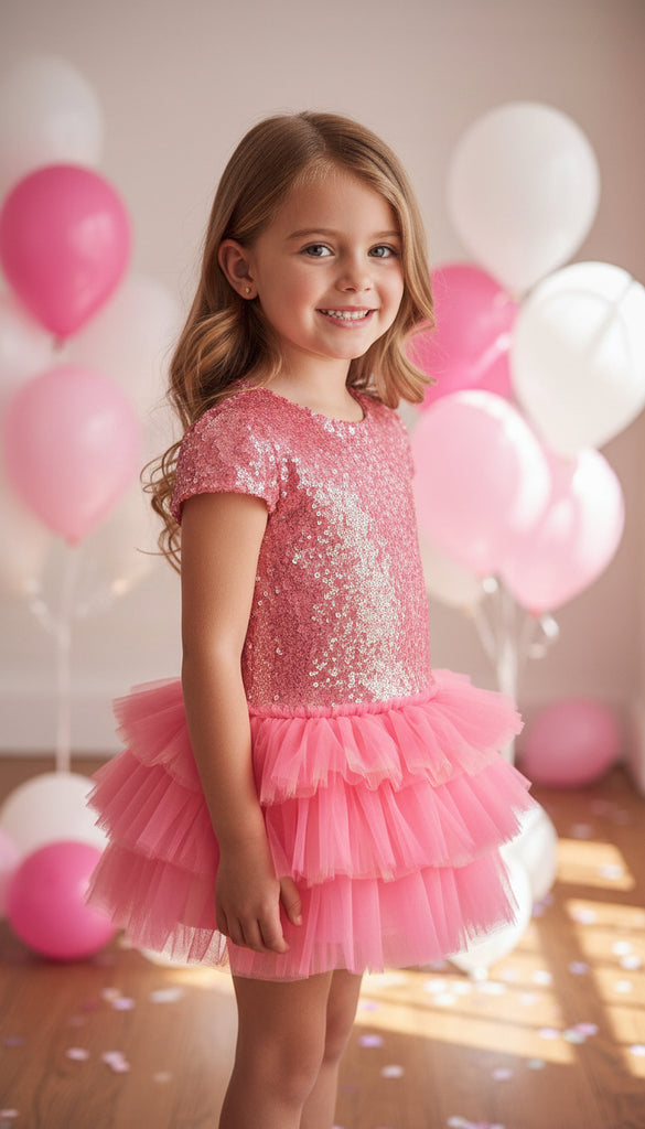 Üst bedeni ışıltılı payet kumaştan tasarlanmış olup, zarif bir parlaklık sağlar.